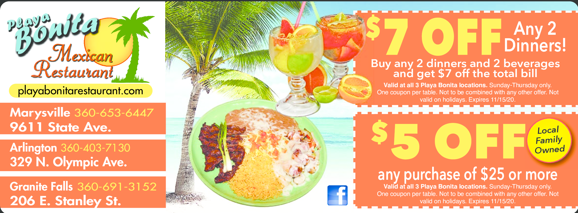 Not valid on holidays. Olympic ave arlington wa 98223 360 691 3152. Valid at all 3 playa bonita locations.